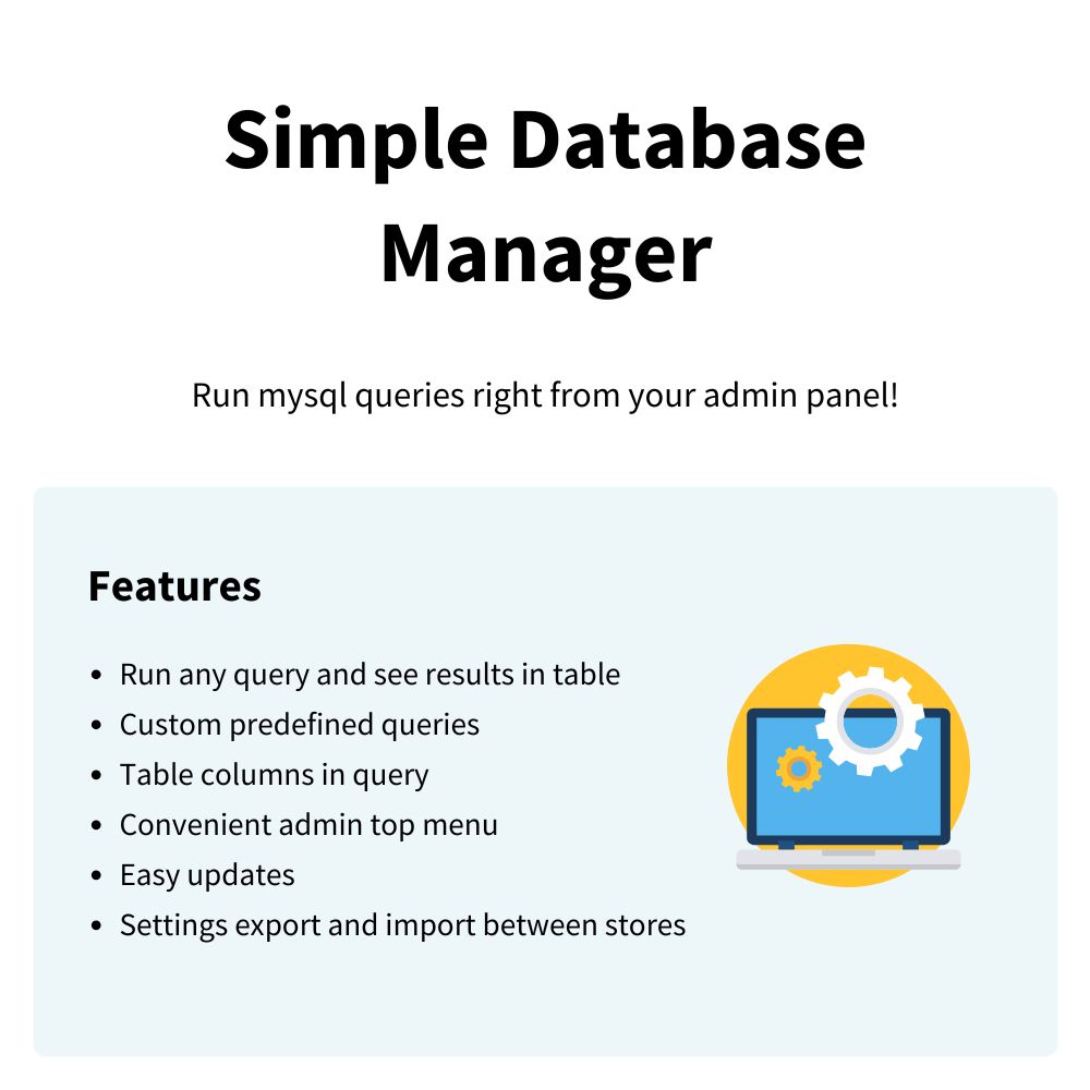 Simple Database Manager extension, a lightweight tool that lets you run MySQL queries directly from your admin panel. View results instantly, create predefined queries, and access essential database tools with ease.