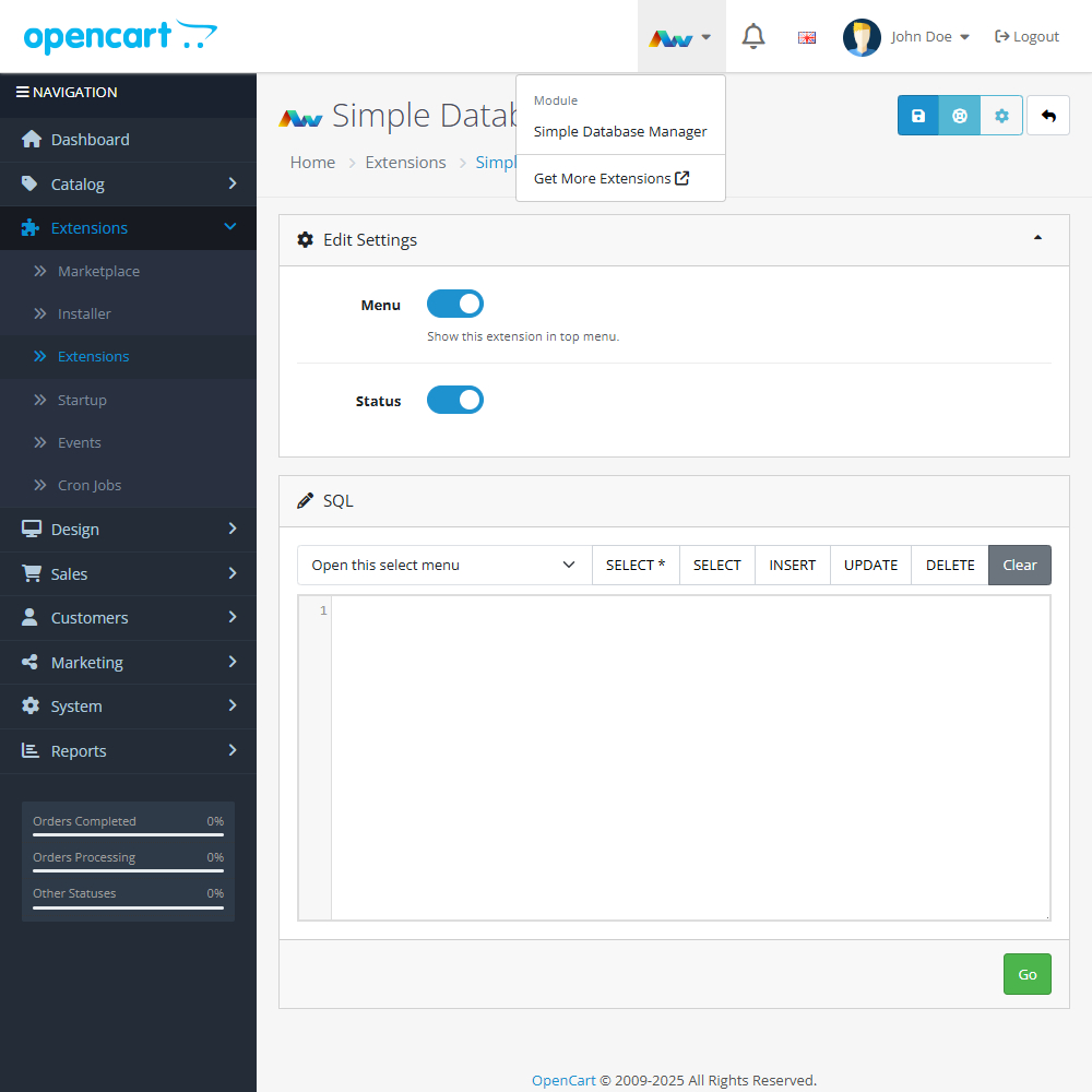 Designed for speed and simplicity, this extension gives OpenCart users just the right amount of database control without overwhelming complexity. Perfect for store owners and developers who need a no-fuss tool for direct database access.