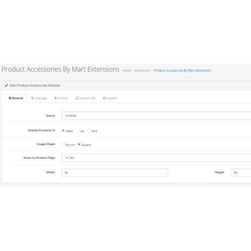 * Display accessories in table, list or grid view.