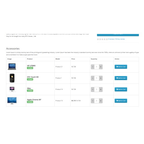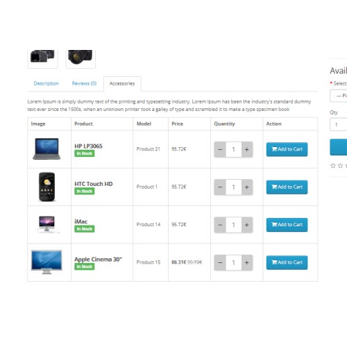 * Display image, name, model, price, brand, stock, quantity etc. in accessories.
