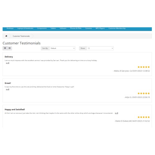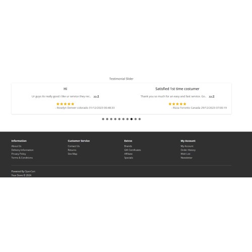 Display testimonials, store reviews as slider or simple list at home page by leveraging Opencart layout engine, means no coding skills requires for showing testimonials at website.