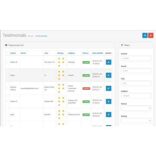 From Admin panel manage all testimonials with dedicated page, to enable the page go to