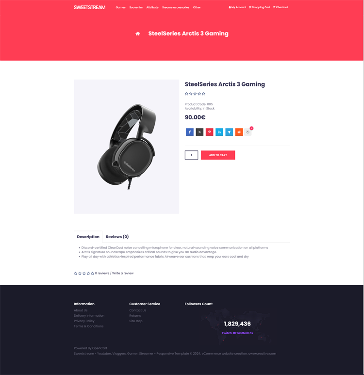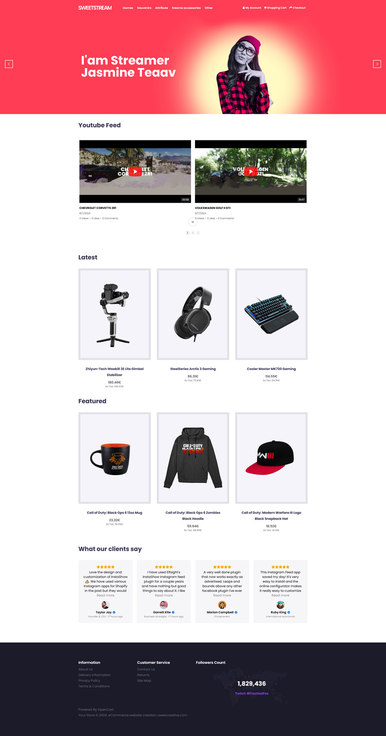 Sweetstream - Responsive Template adapted for sale Youtuber, Vloggers, Gamer, Streamer, easy to install, does not replace the original system files, so you can install already in your real store and remove at any time, it will not cause any trouble for your store.