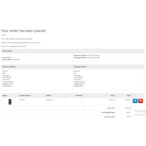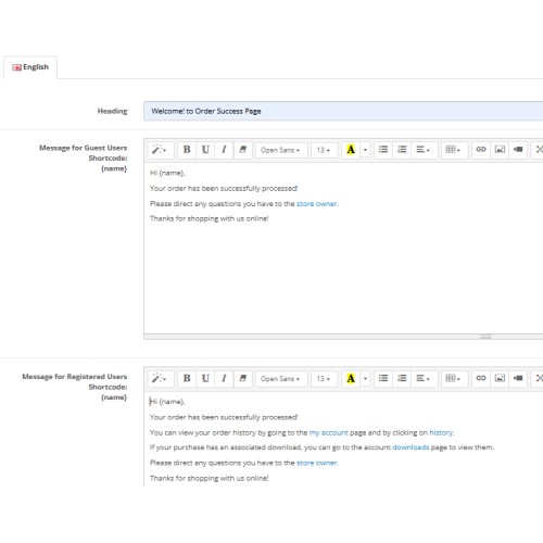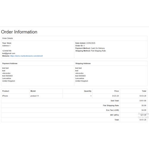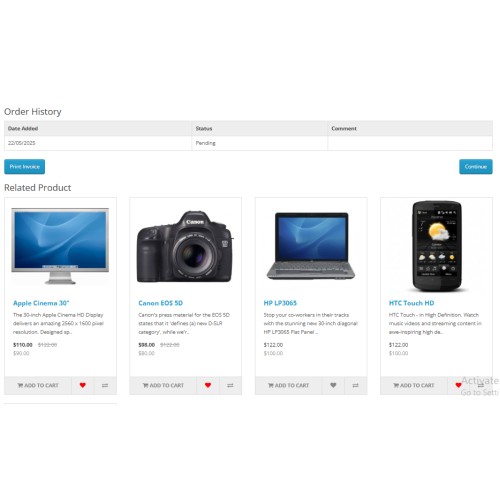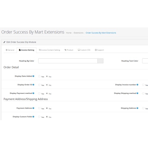 With this extension you can improve the default Opencart success page. This extension allows you add success message and show the order information on success page. You can customized the settings and display info according to your needs. This gives you a button to print the invoice on success page.