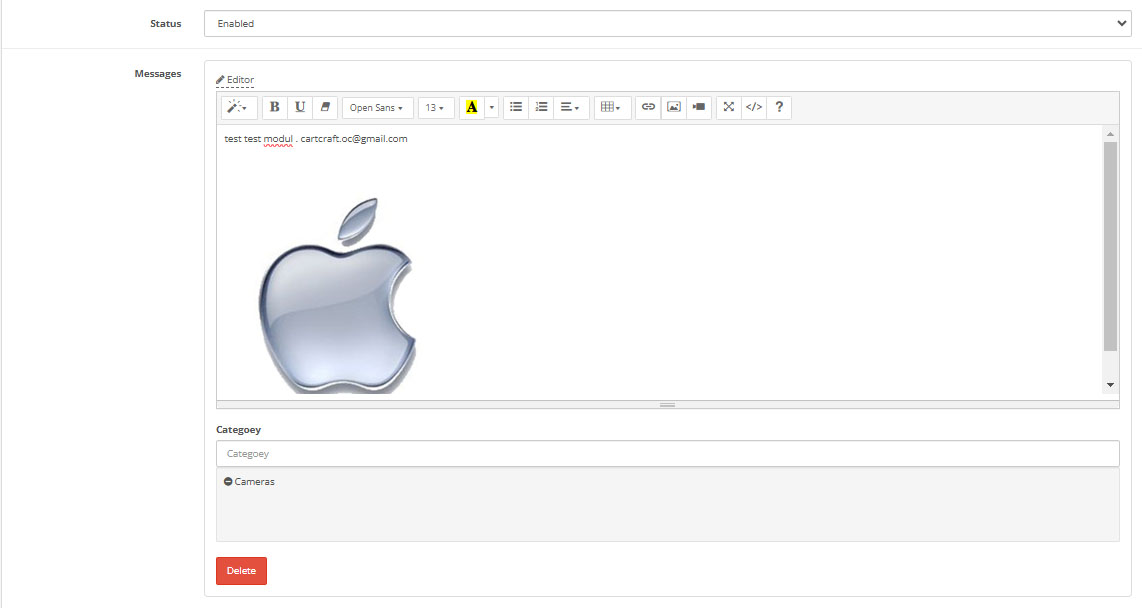 Enhance your OpenCart store with the "Fixed Messages For Categories" extension, allowing you to display customizable notifications based on selected categories. This module enables you to create an unlimited number of messages with rich HTML content, ensuring that your notifications are visually appealing and capture your customers' attention. Whether you want to promote special offers, announce new products, or convey important news, this extension provides an effective way to communicate directly with your customers. Notifications appear as unobtrusive pop-ups, ensuring a seamless shopping experience while keeping your customers informed.