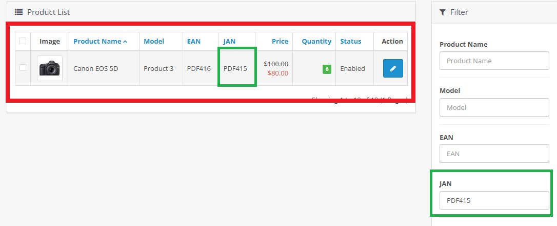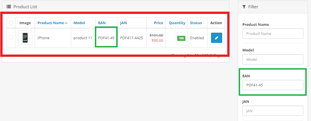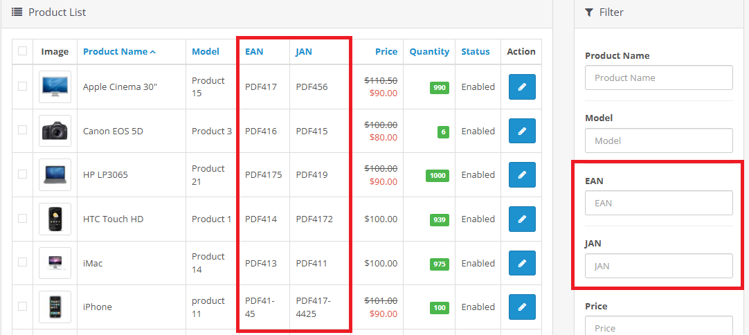 How to Use: After installing the module, navigate to the product management page and use the newly added filters to search for products. You can also view the EAN and JAN identifiers in the product list.