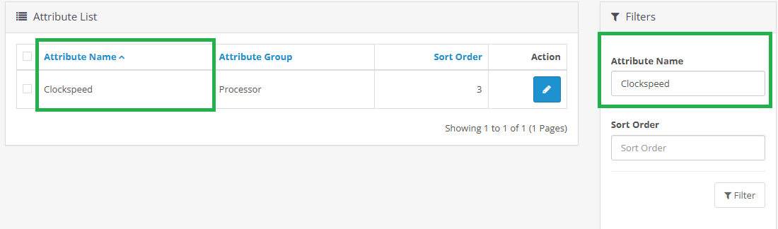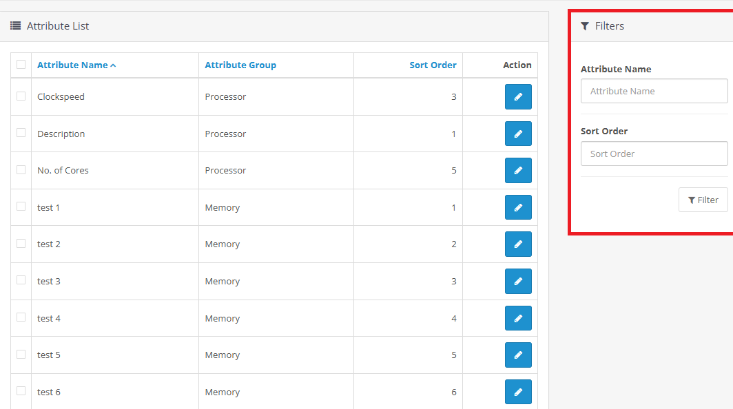 This module improves the ability to filter attributes (Attributes) in the Open Card management section.