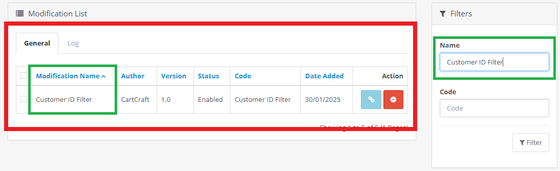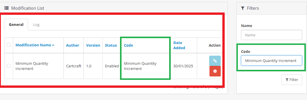 This module allows you to add the ability to filter modules based on their name and code in the modifications section.