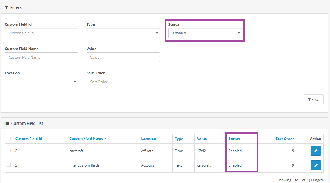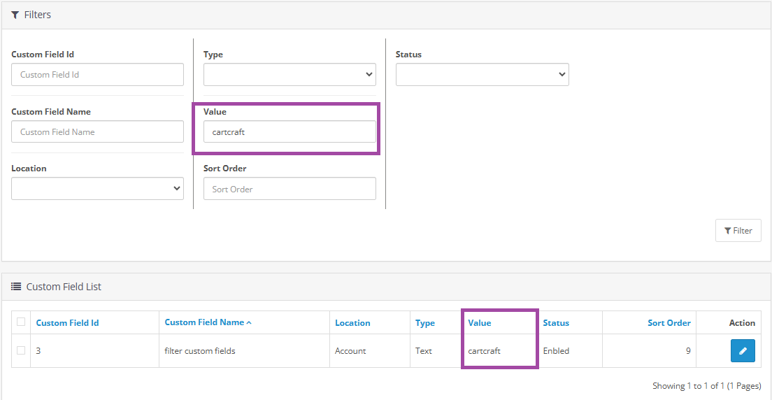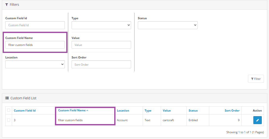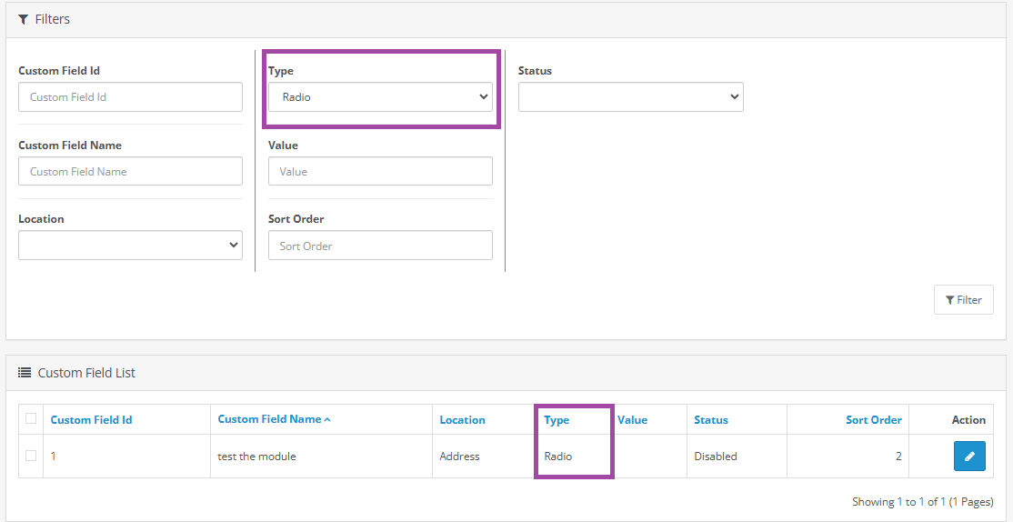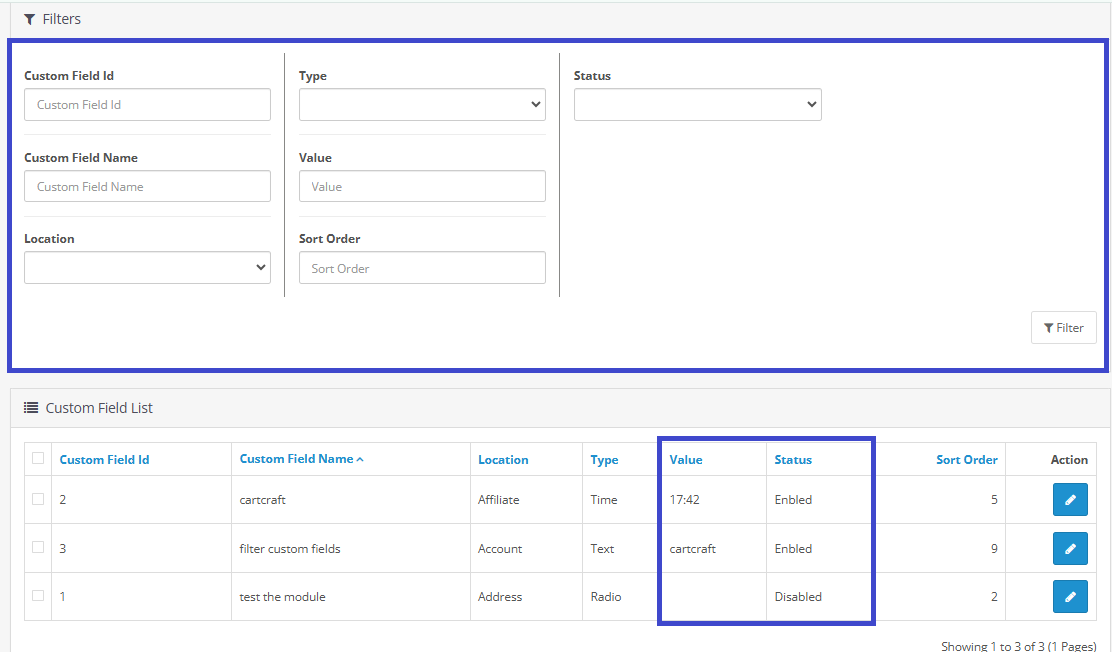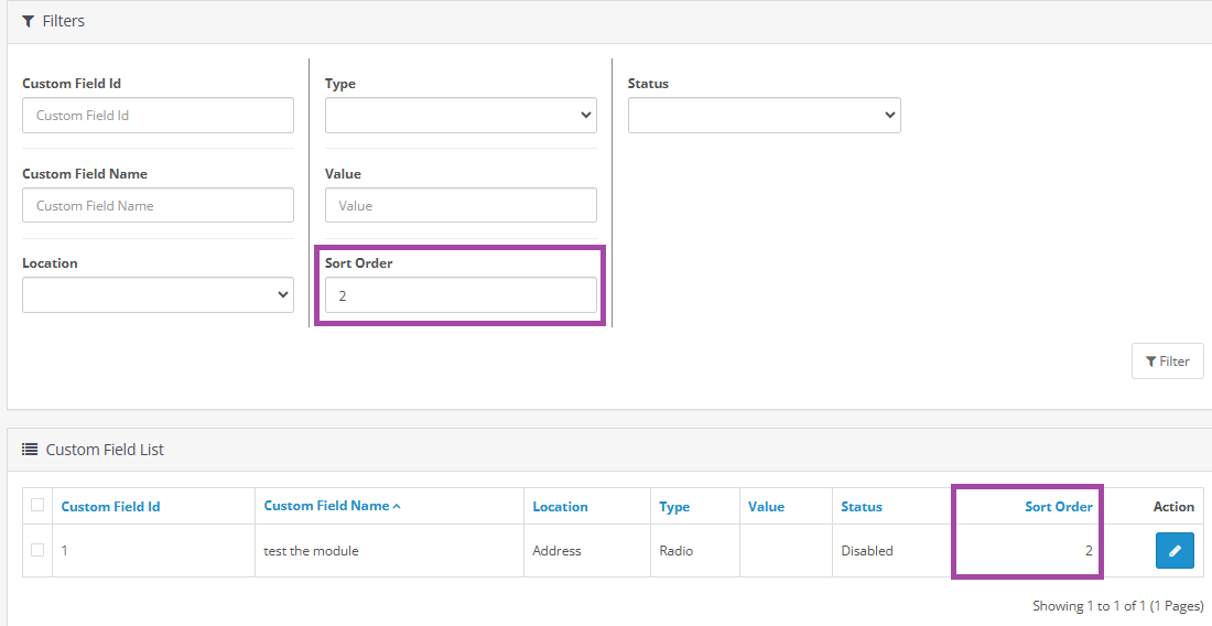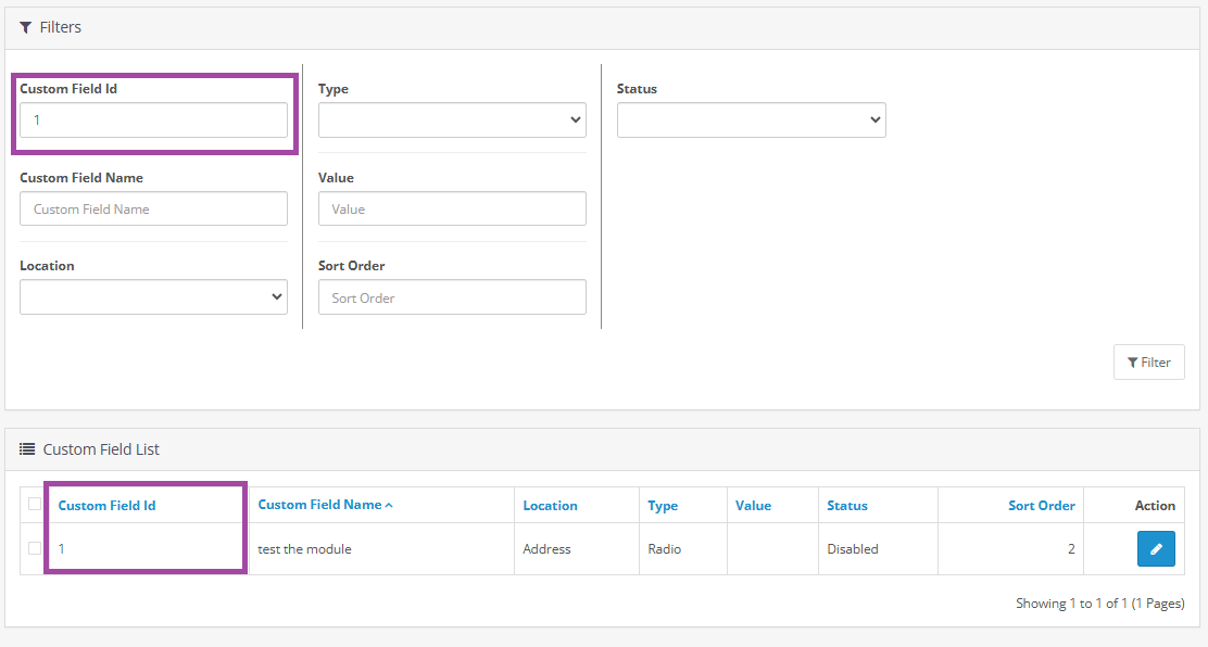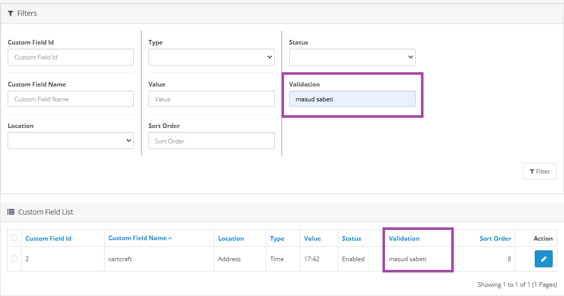 The "Custom Field Filter Suite" module for OpenCart enhances the management of custom fields by allowing administrators to filter custom fields based on various criteria. This module introduces a robust filtering system that allows users to search and sort custom fields by custom field ID, name, location, value, sort order, Validation ,status, type, and validation.