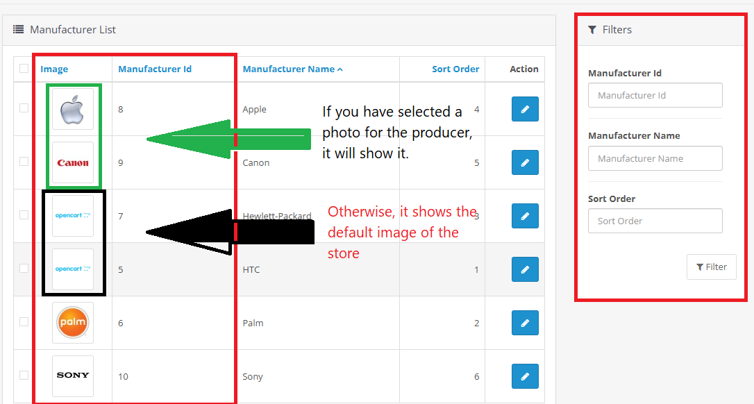 The module introduces a user-friendly interface, where administrators can input their desired filters to retrieve specific manufacturers quickly. It also adds image support for manufacturers, allowing for a more visually appealing catalog display. This enhancement not only streamlines the manufacturer management process but also improves the user experience for store administrators.