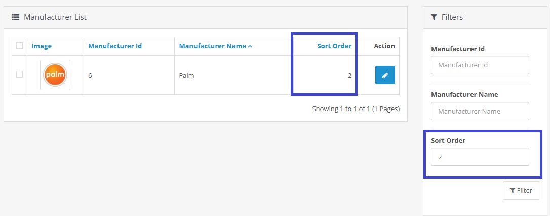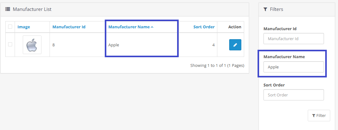 With this modification, users can easily manage and search for manufacturers in the admin panel, improving the overall efficiency of product management.