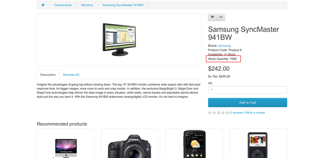 Stock Manager is an advanced extension for OpenCart that allows store administrators to display real-time product stock levels based on selectable options directly on the product page. This feature helps customers view up-to-date stock availability for each option, enhancing their shopping experience.