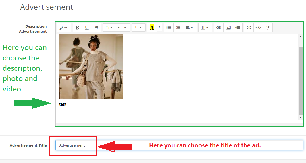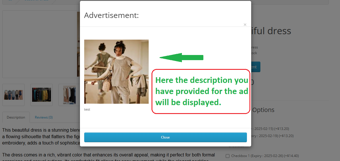 The module creates a user-friendly interface where product managers can easily input advertisement details, which are then displayed prominently on the product page.