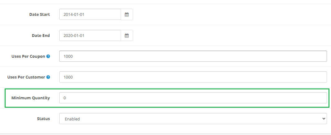 This feature ensures that customers must purchase a specific number of items before they can apply a particular coupon code at checkout.