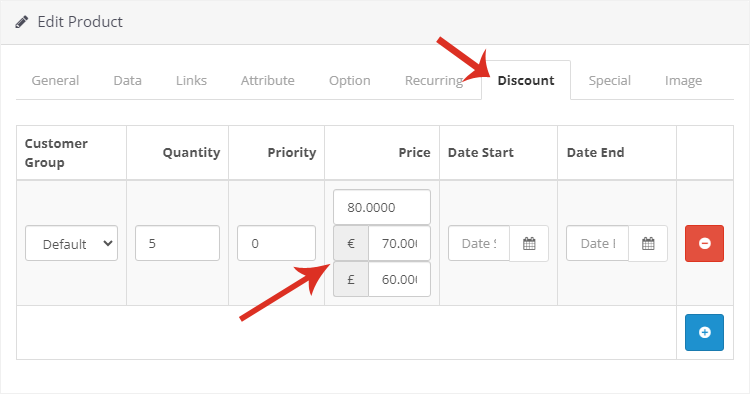 With a streamlined interface, store owners can easily manage and display product and discount prices according to specific currencies, providing a better shopping experience for users globally. If a currency price field is left empty, OpenCart will function as usual, using the default price and currency conversion, ensuring no disruption to your store's operations.
