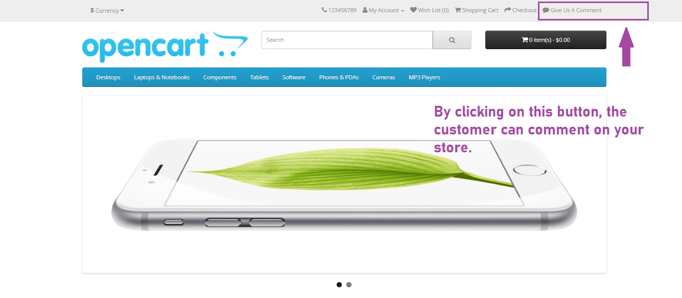 Using this module, you have a new button called "Give Us A Comment" in the header.