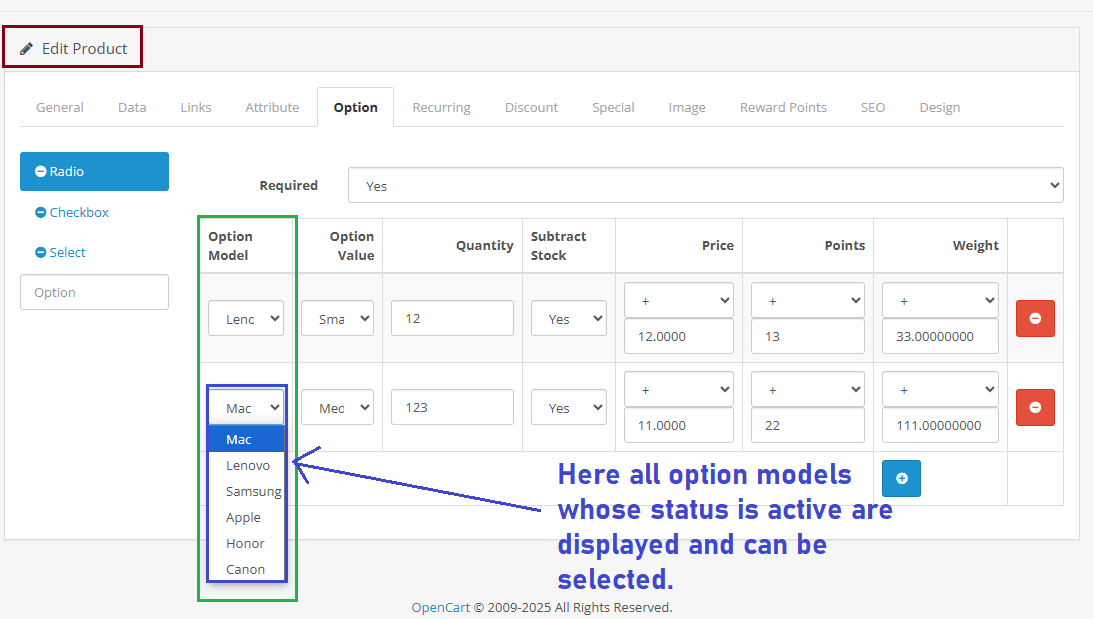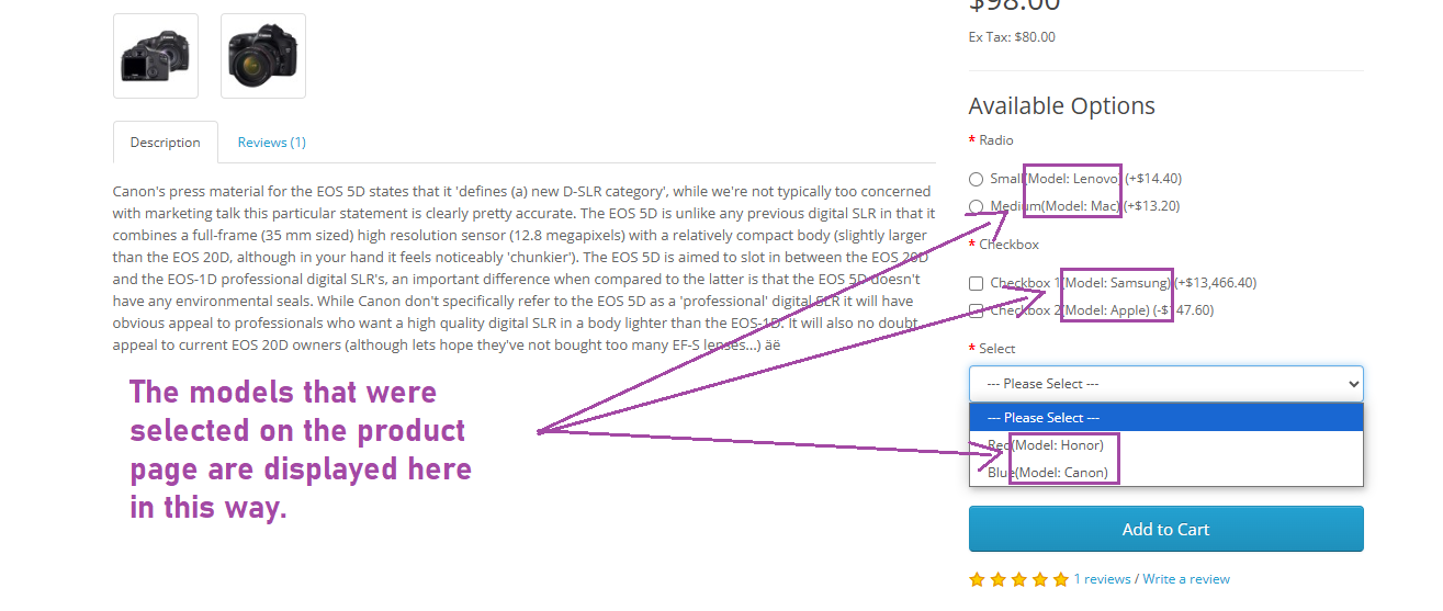 By ensuring that the option model is clearly visible and easily selectable, businesses can improve user engagement and satisfaction.