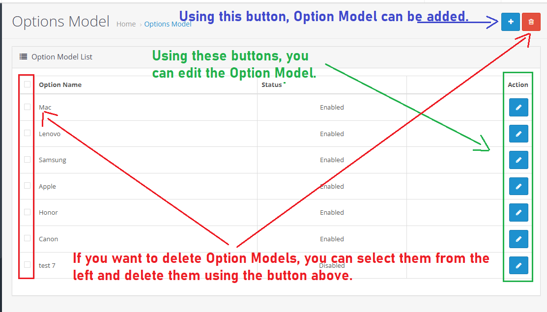 Using this module, you can select a model for options.