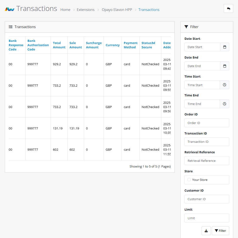 Hosted Payment Page – Customers are redirected to a secure Opayo Elavon-hosted payment page, ensuring compliance and reducing PCI DSS scope.