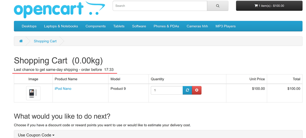 This message appears in the cart and motivates customers to complete their purchase faster.