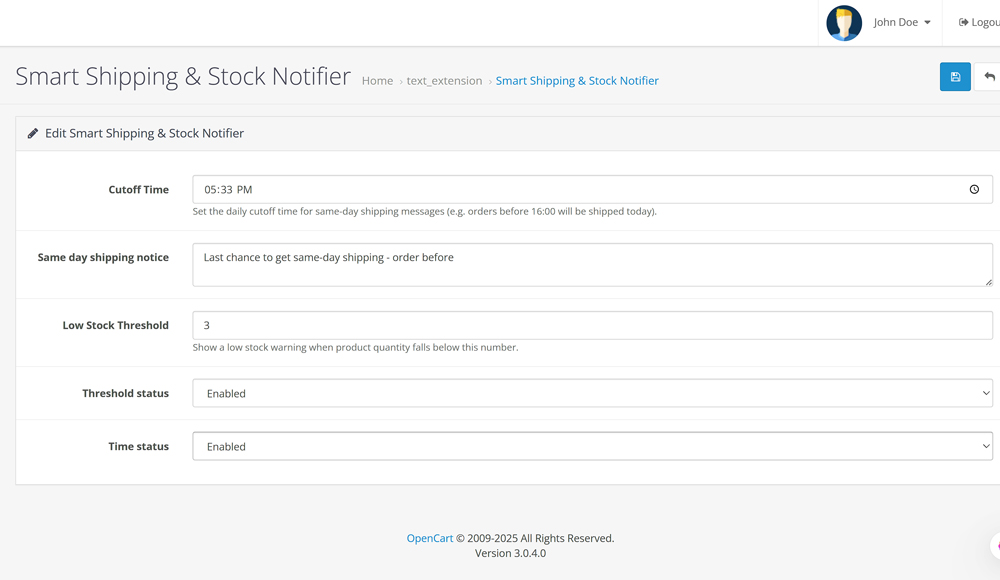 Smart Shipping & Stock Notifier adds two smart features to your OpenCart store: