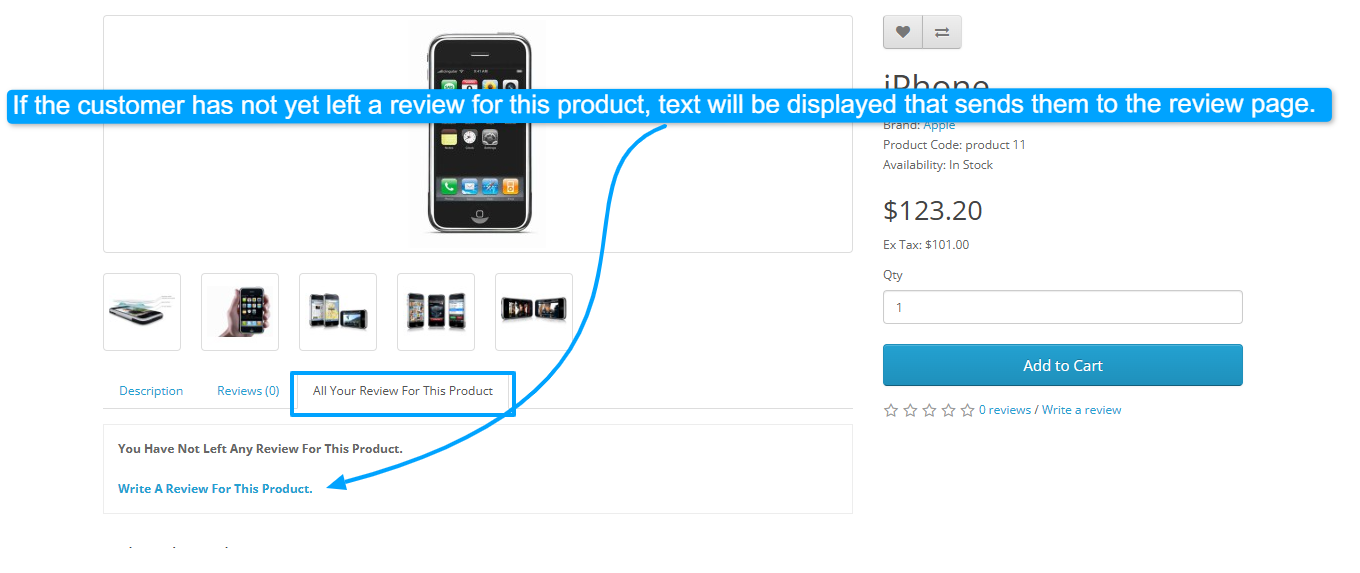 And if the customer does not have a review for this product, a link will direct them to the review tab to write a review.