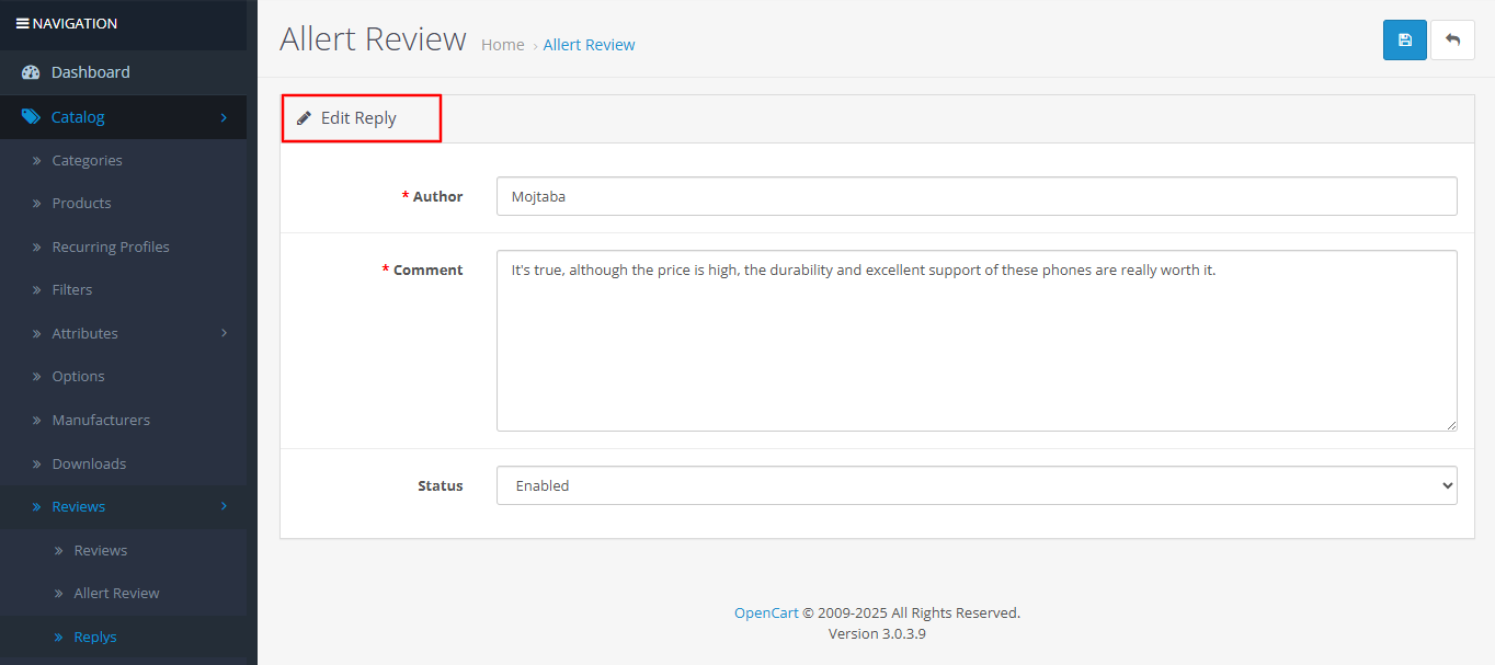 In the admin panel, in the left column, there are two new sections called "Alert Review, Replies".