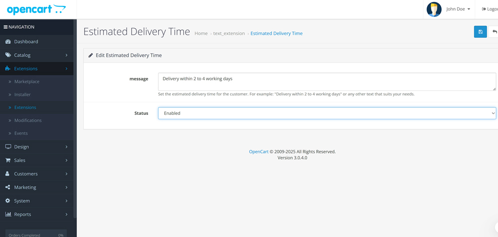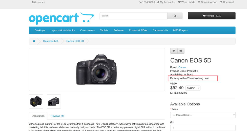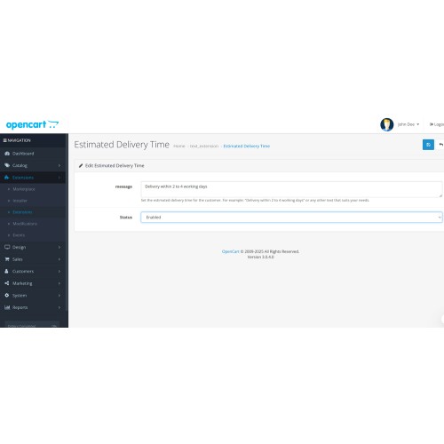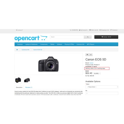 The Estimated Delivery Time extension for OpenCart helps improve the shopping experience by displaying an estimated delivery time message for products. This feature shows a customizable message on the product pages to inform customers about when the product will be delivered to them.