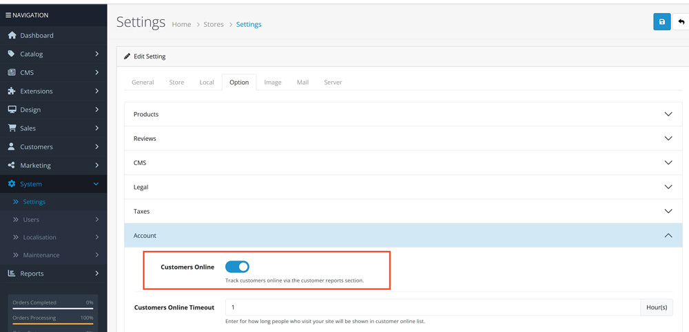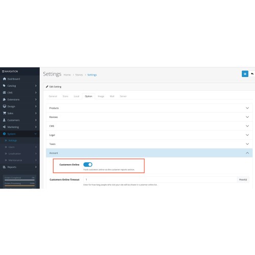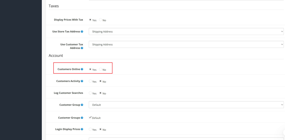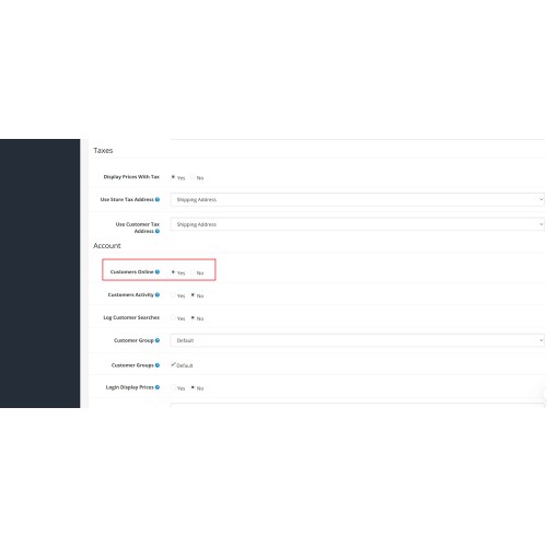 To use the Online Visitors mode, the “Customers Online” option must be enabled in: