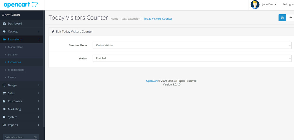 The Today Visitors Counter extension is a lightweight and practical tool for displaying visitor statistics on your store. Once installed, it places a small, elegant floating badge in the corner of your site, which can be configured to show either current online visitors or today’s total visits.