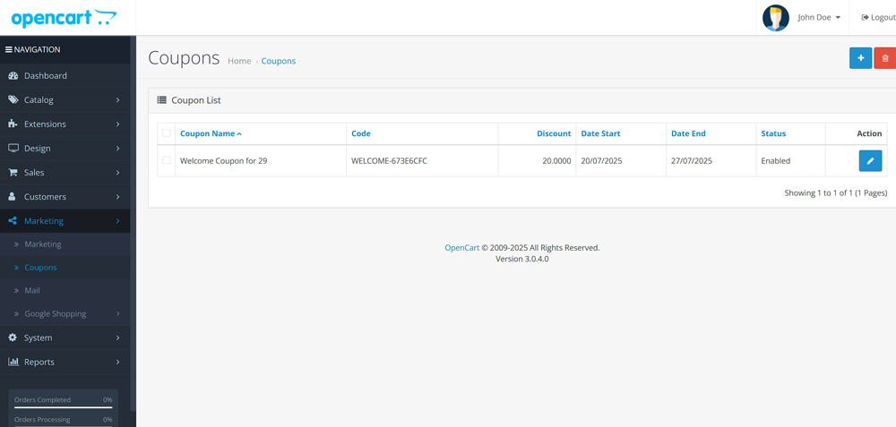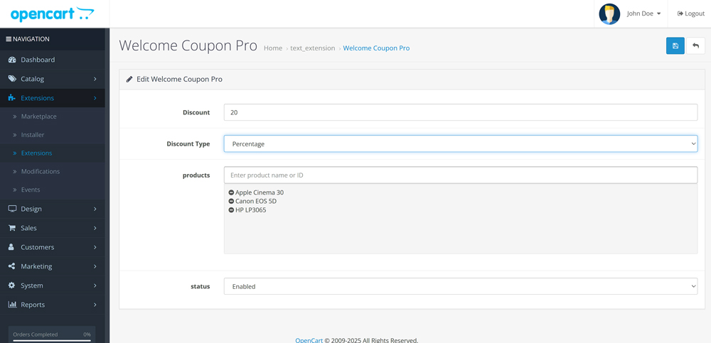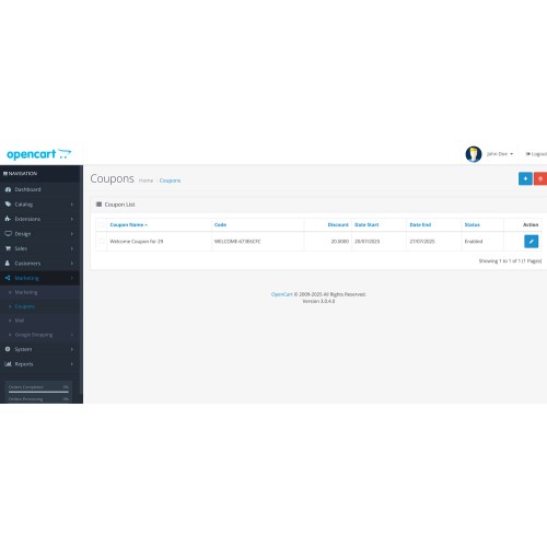 Welcome Coupon Pro is a powerful and flexible OpenCart extension that generates a unique discount code for each new user, helping you turn visitors into loyal customers from day one.