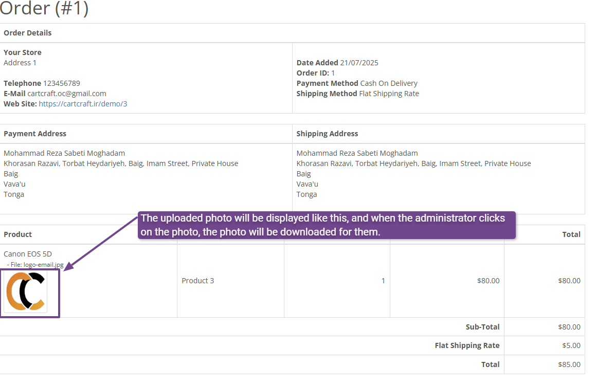 This feature is extremely efficient because the manager can see the images related to each order without the need to search and open separate files, and if needed, they can download the images with a single click.