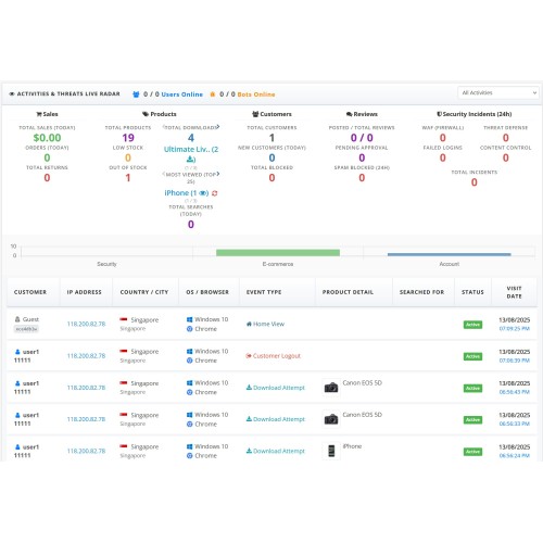 Transform your OpenCart admin into a powerful, real-time command center and give your store the iron-clad protection it deserves. This is more than just an activity logger; it's a complete, all-in-one suite designed to provide total insight and proactive security.