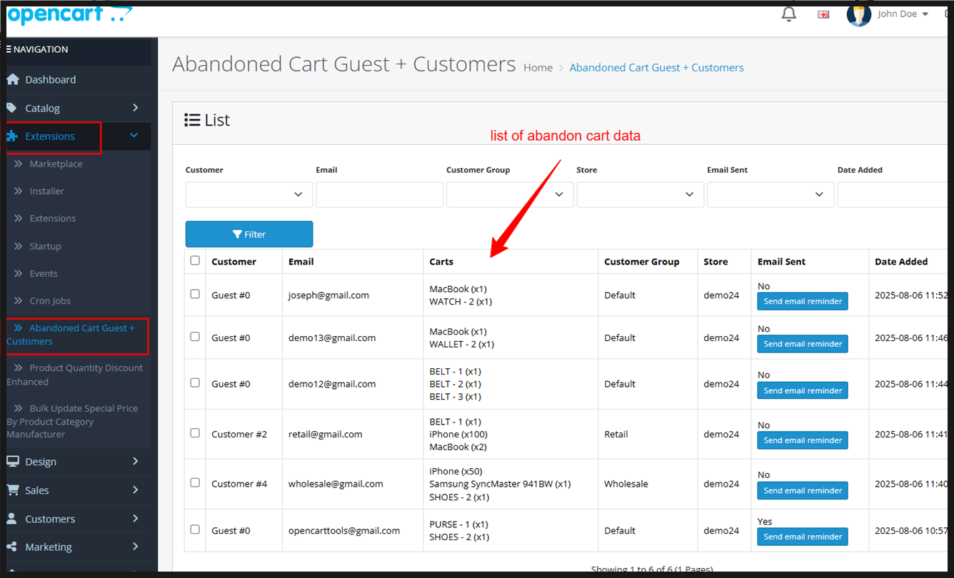 This module helps recover lost sales by tracking abandoned carts for both registered and guest users. It allows you to send manual email reminders with cart details