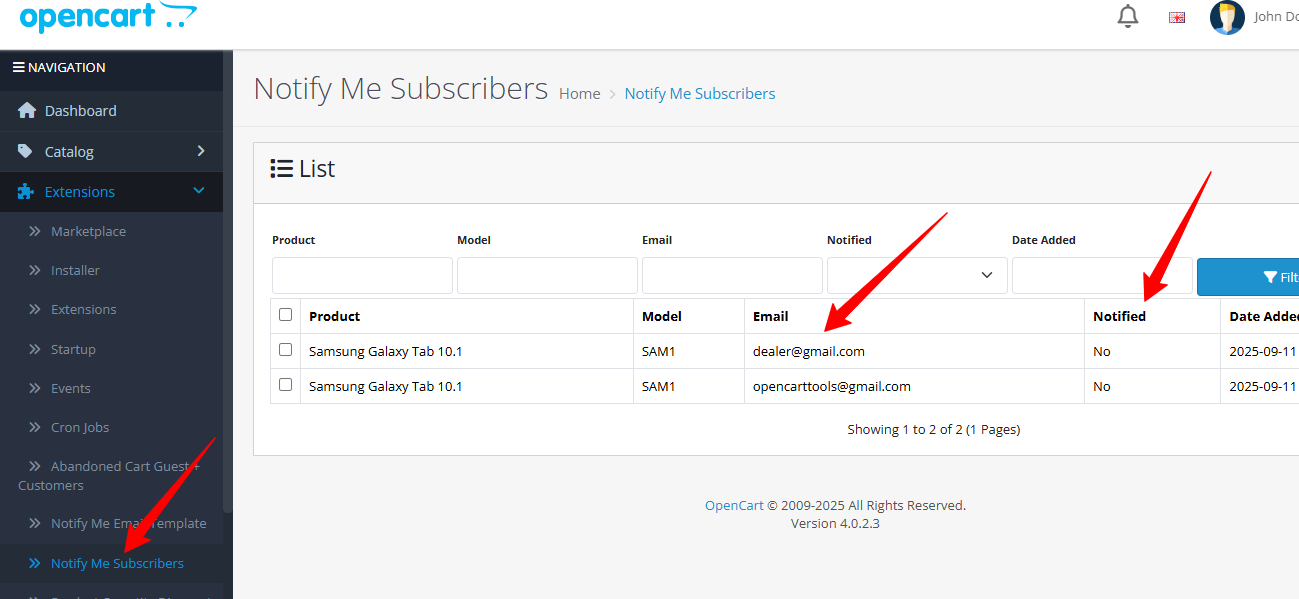 Notify Me When Back in Stock – Product Availability Alerts for OpenCart 2.X + 3.x + 4.x