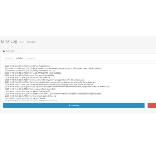 - **View logs** — shows entries from `system/storage/logs/ocfix.log`.