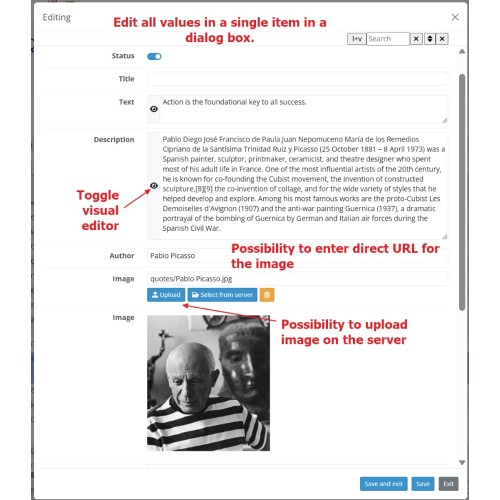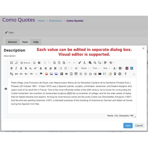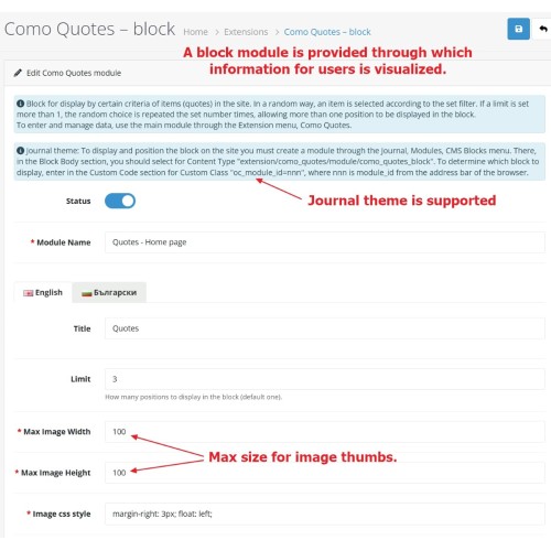 This extension is necessary for any site or store if the owner wants to diversify the content and attract more visitors. Module is for entering and management of data and general settings for displaying quotes in the site.