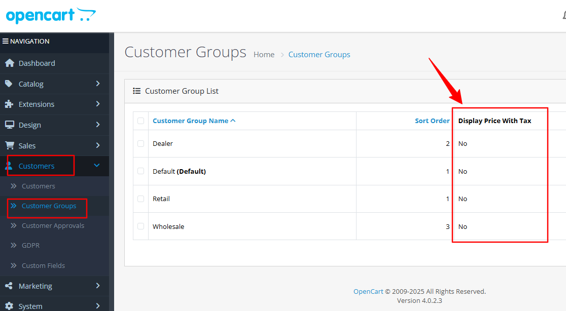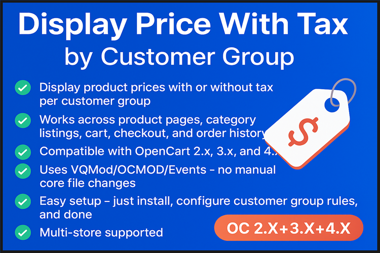 Display Price With Tax by Customer Group for OpenCart 2.x + 3.x + 4.x