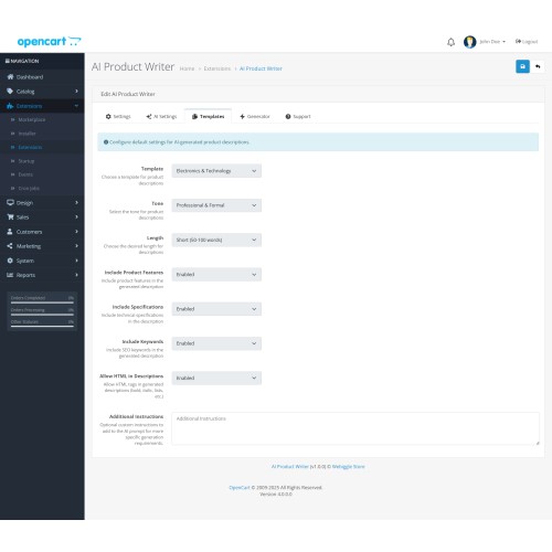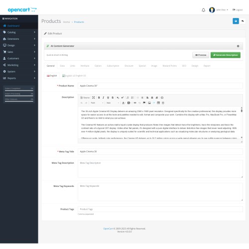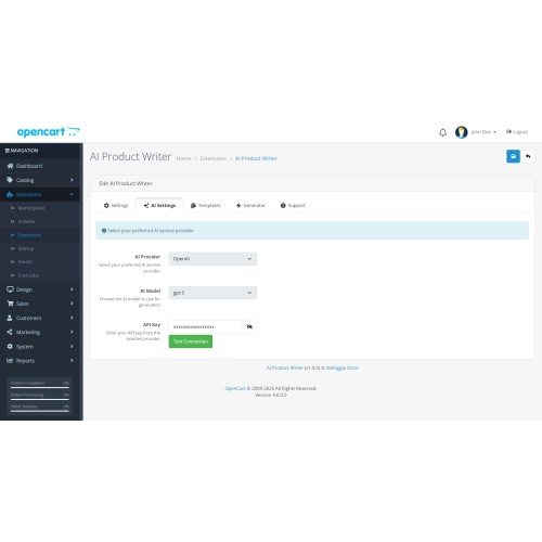 AI Product Writer integrates OpenAI's cutting-edge GPT-5 & GPT 4 technology directly into your OpenCart product editor, generating professional, unique product descriptions in seconds—not hours.