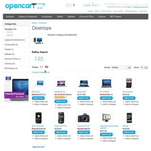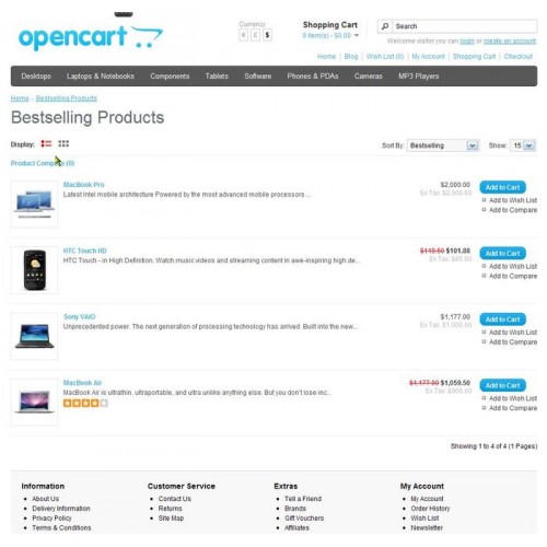 * Pages include Category, Manufacturer, Search and Specials.