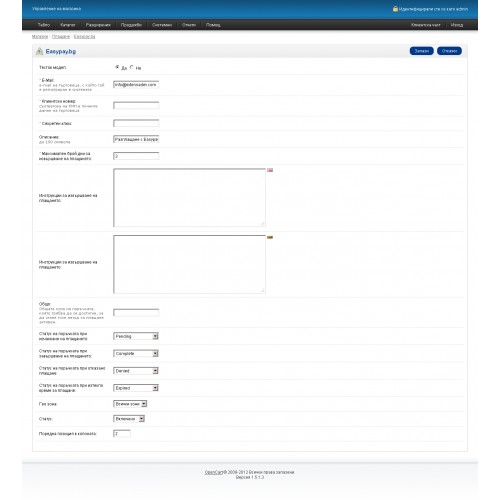 EasyPay/B-pay - bulgarian EasyPay payment gateway(OpenCart 1.5+)