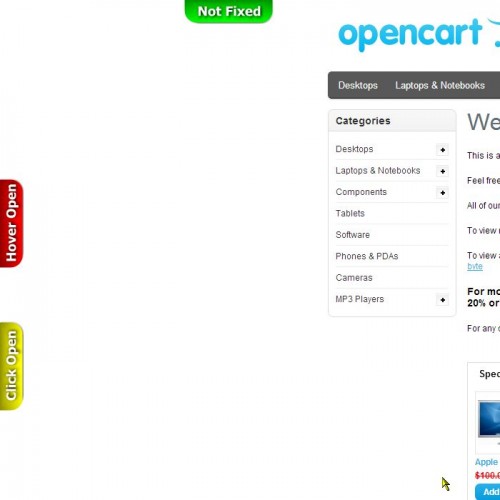 * Behaviour options include speed of slide, trigger on click or hover, fixed position or not, load expanded or not.