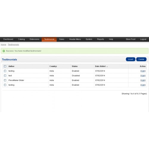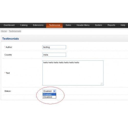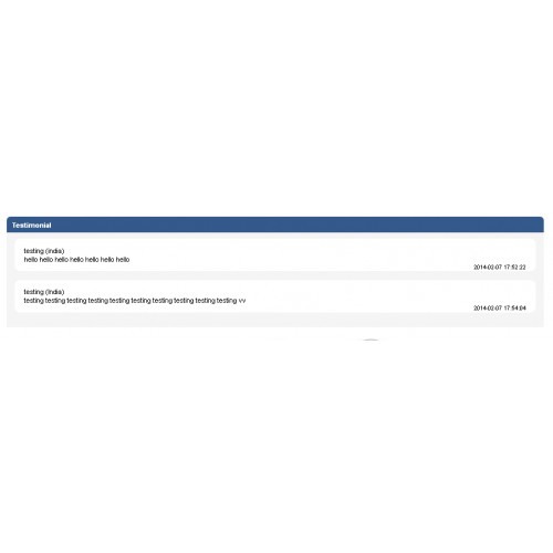 This module allows you to insert customer testimonials and have them appear on your website. The testimonials will display on front side in your site if you will Enable them from admin panel if not want to display in front side then Select Disable option.