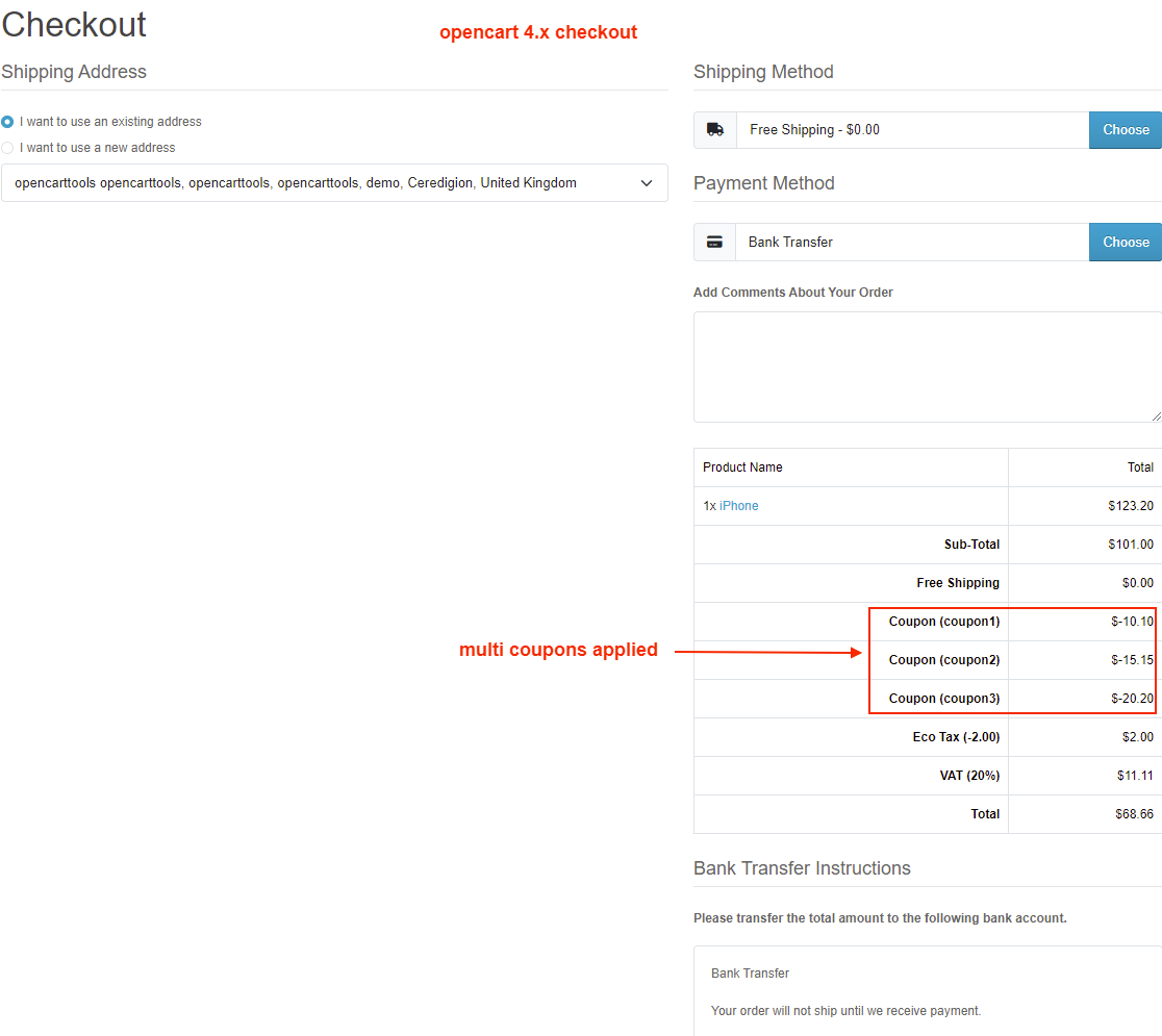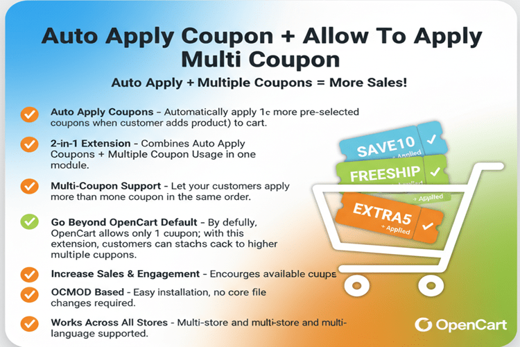 ✔ Go Beyond OpenCart Default – By default, OpenCart allows only 1 coupon; with this extension, customers can stack multiple coupons.