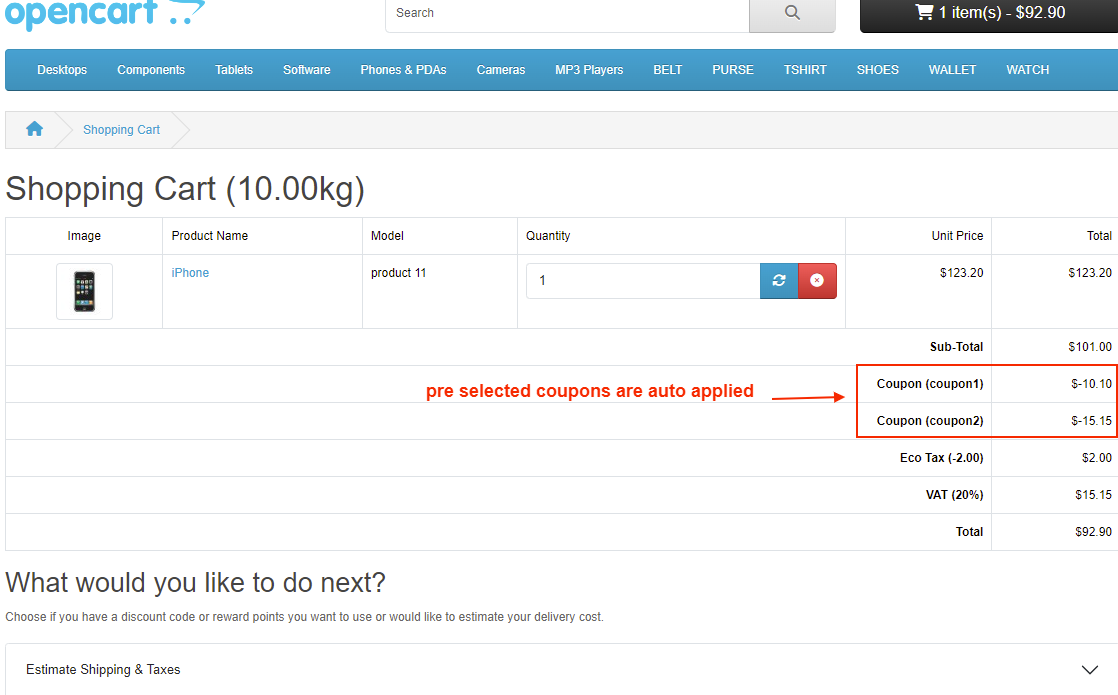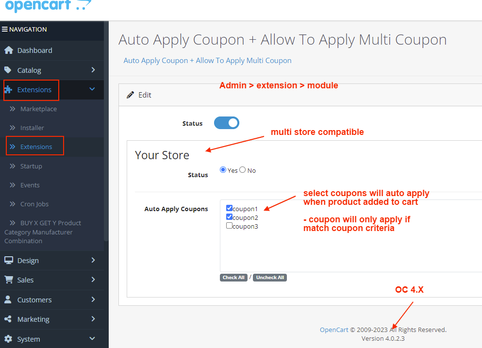 Auto Apply Coupon + Allow Multiple Coupons - OpenCart 2.x + 3.x + 4.x