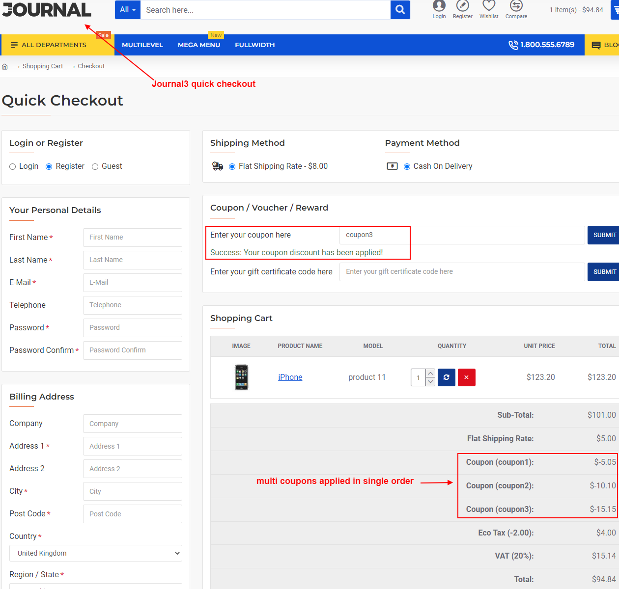 ✔ Multi-Coupon Support – Let your customers apply more than one coupon in the same order.