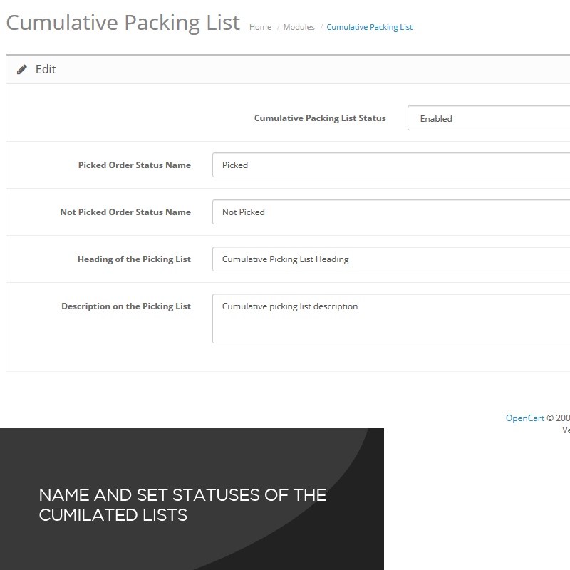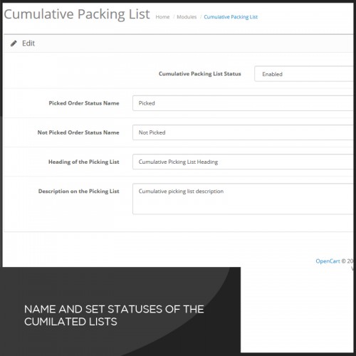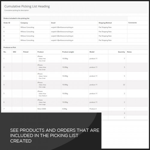 This extension allows you to generate a combined packing list for multiple orders,