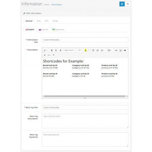 Custom Shortcodes 3.0.x [ocmod]
