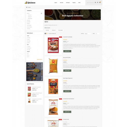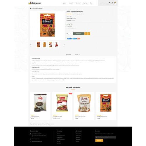 Spiciness Spice Store opencart responsive template suits for categories like vegetable, grocery, food, spice, restaurant, burger, cake, wine, fruits, cooking, snacks, coffee, bakery etc. Template is compatible for multi-language and multi-currency so, it's east to sale your products worldwide.