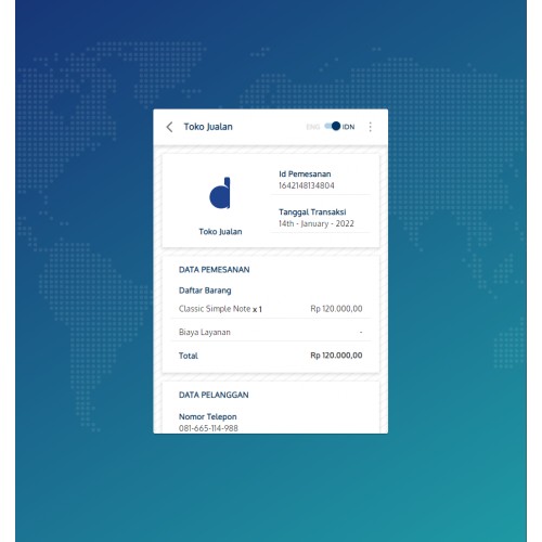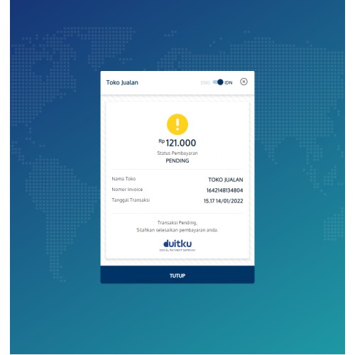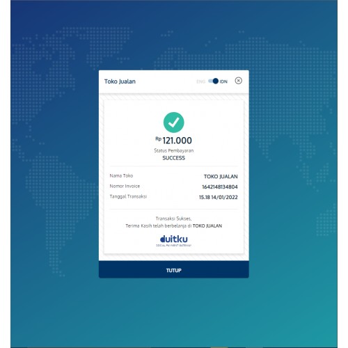The user verifies the details and clicks the pay button. Merchant's javascript code calls checkout.process(DUITKU_REFERENCE, options).